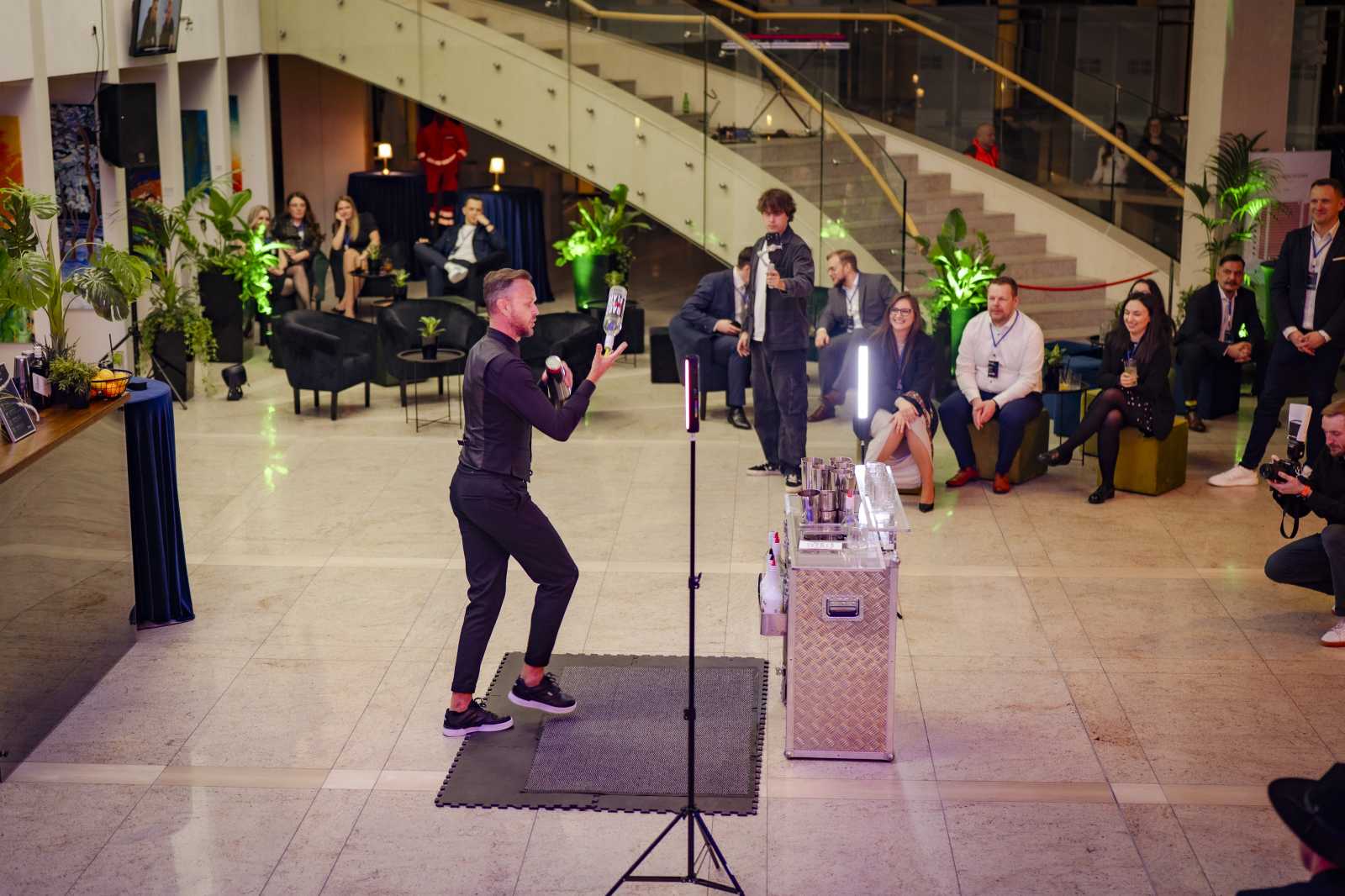 Wieczorna część wydarzenia miała jednak nie tylko oficjalny charakter. Uczestnicy mogli również na chwilę odetchnąć i złapać dystans dzięki występowi teatru improwizacji, który wniósł sporą dawkę humoru i luzu. Całość uzupełnił efektowny pokaz barmański, który był świetnym akcentem kończącym dzień pełen merytorycznych rozmów i inspiracji.
